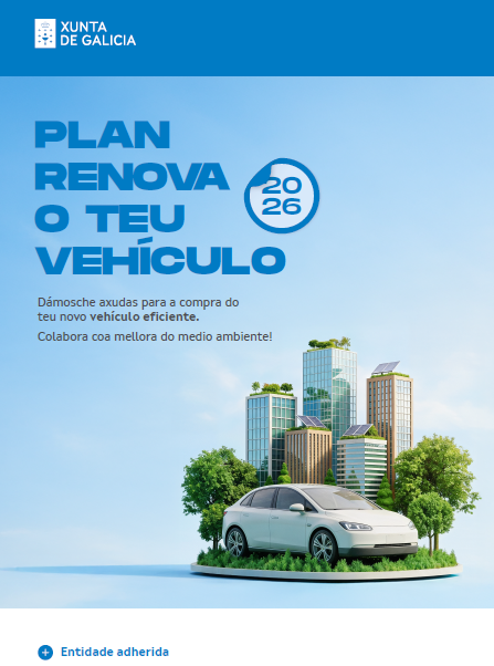 A continuación, se describen brevemente las características principales de esta línea de ayudas en régimen de concurrencia no competitiva, aunque la información que se considerará oficial para todos los efectos será la publicada en la Resolución de 5 de diciembre de 2025 por la que se establecen las bases reguladoras para la concesión de subvenciones en régimen de concurrencia no competitiva relativas al Plan Renova o teu Vehículo, así como la selección de entidades colaboradoras que participarán en su gestión y se procede a la convocatoria para la anualidad 2026 (Códigos IN421T e IN421U). (DOG de 23 de decembro de 2025).