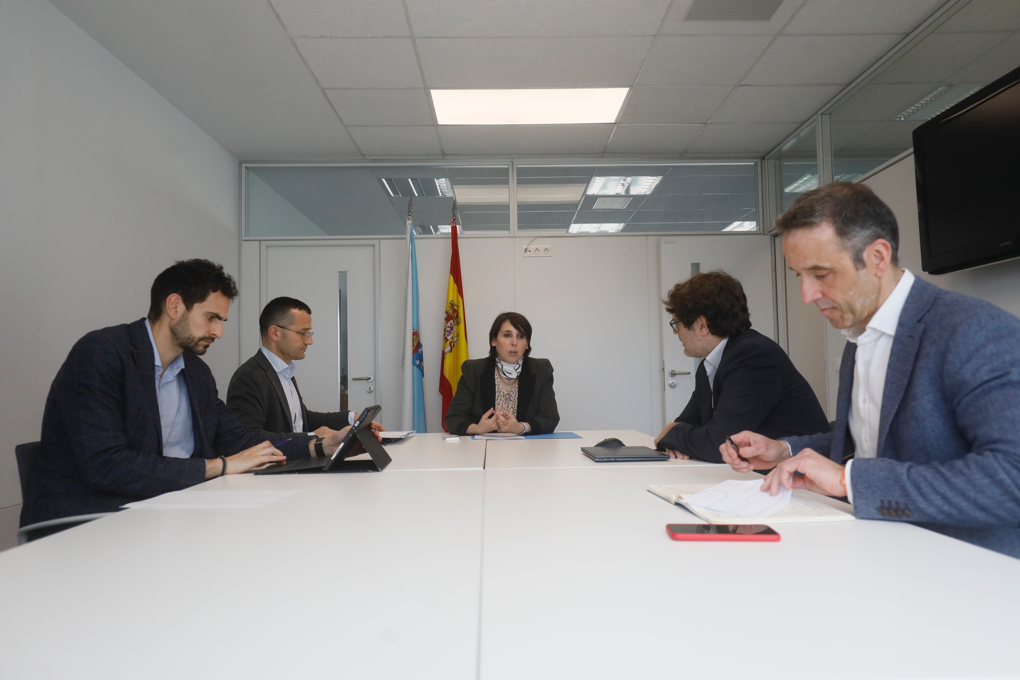 A conselleira, acompañada do secretario xeral de Industria e Desenvolvemento Enerxético, Nicolás Vázquez, e do director de Planificación Enerxética e Minas, Pablo Fernández Vila, mantivo unha reunión de traballo co director da zona noroeste de UFD e delegado do Grupo Naturgy en Galicia, Gerardo Miguel Rodríguez Martínez, para analizar esta cuestión e buscar novas vías de colaboración.