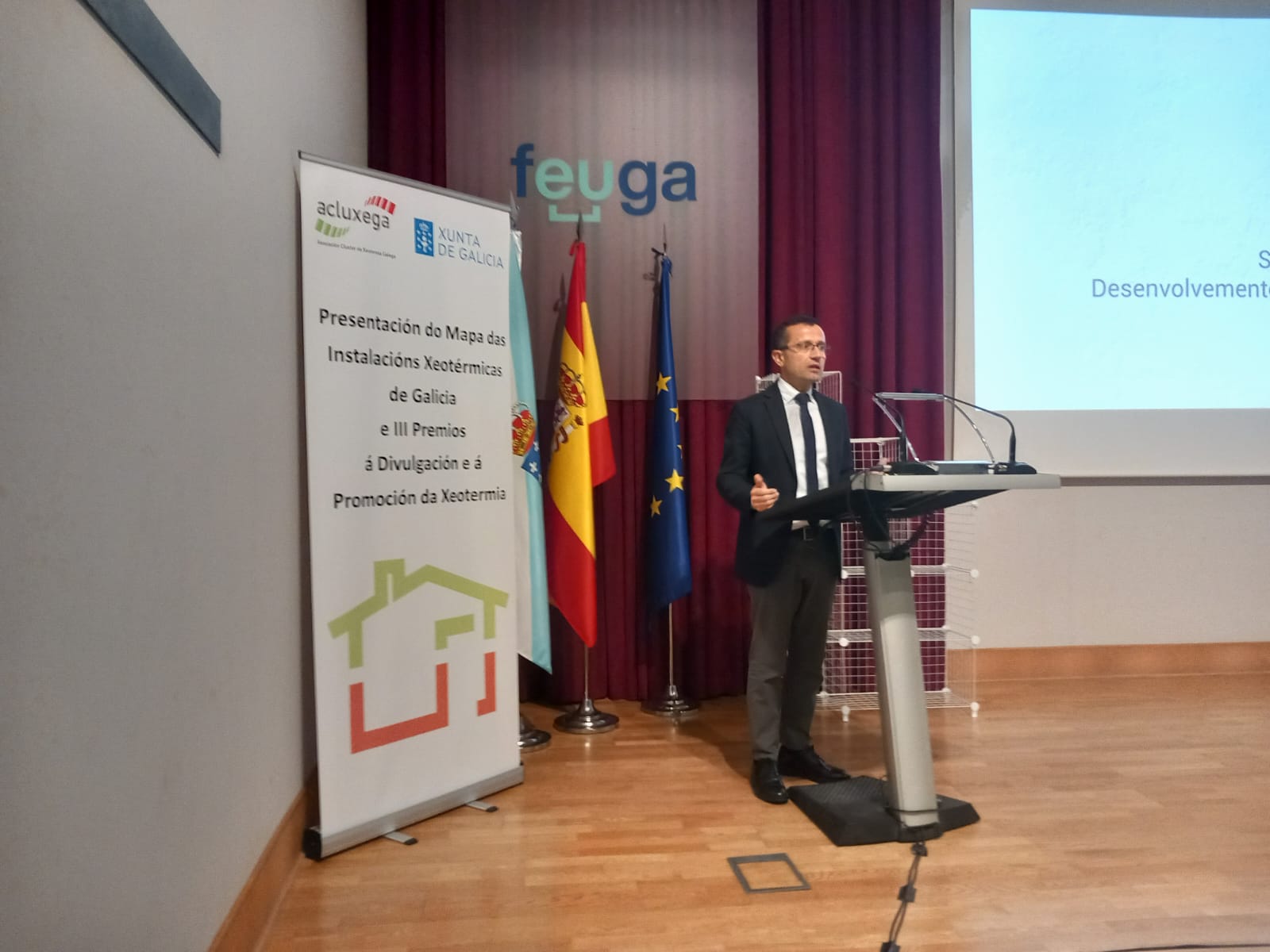 O secretario xeral Industria e desenvolvemento enerxético, Nicolás Vázquez, clausurou esta mañá a gala de entrega dos III Premios á divulgación e á promoción da xeotermia, que promove a Asociación Clúster da xeotermia galega (Acluxega). Nela abondou no papel que ten que asumir o sector para incrementar o peso da xeotermia no mix enerxético nun momento de transición como o actual. E ao fío, reiterou o apoio que o Goberno galego “seguirá prestando neste proceso de transformación con apoios para este tipo de instalacións e a promoción de iniciativas e actuacións que permitan desenvolver esta tecnoloxía na comunidade”.
